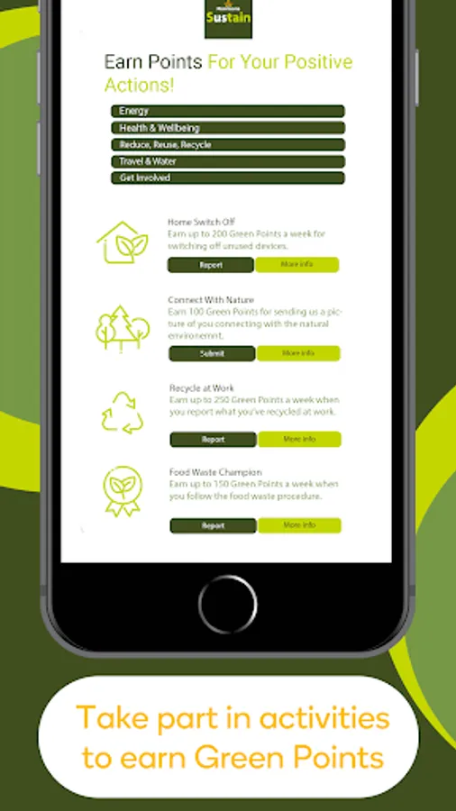 With this app you will be able to earn Green Points for your actions in themes including travel, energy, waste, water and health and wellbeing.