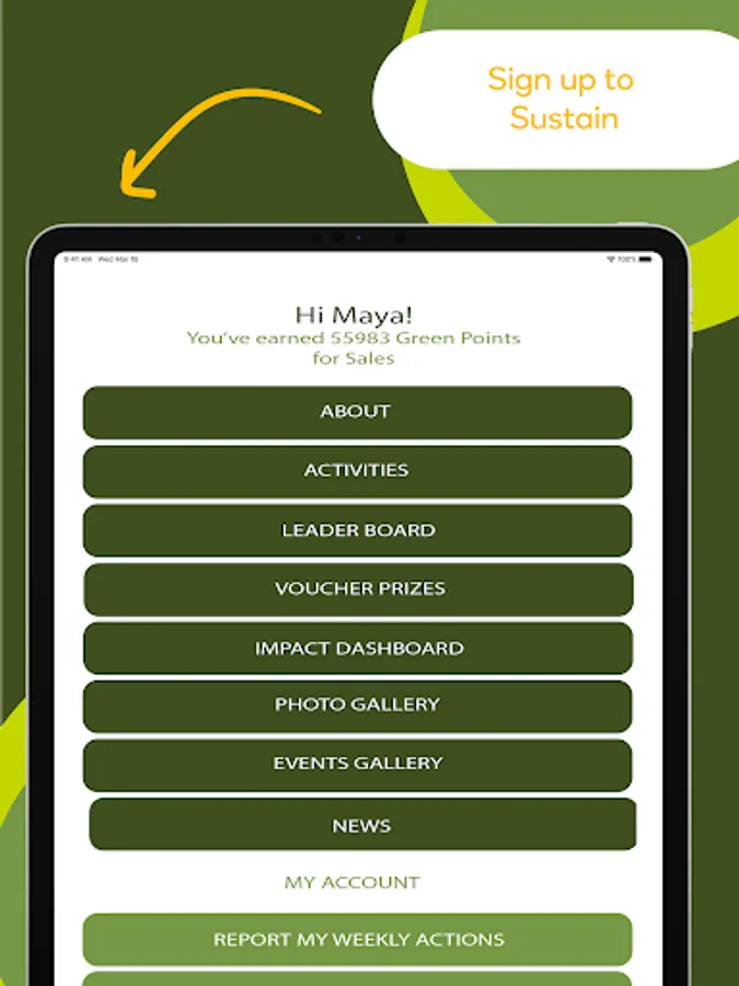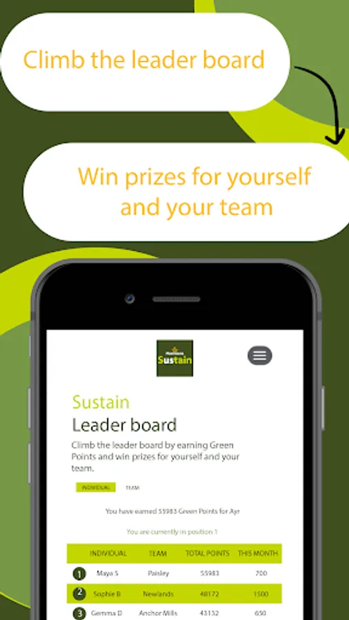 You can share photos, opt into activities and take quizzes to earn Green Points. You can see where you are on the leader board and enter your weekly achievements.