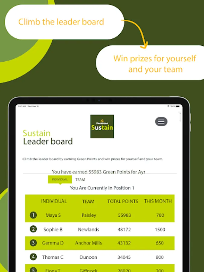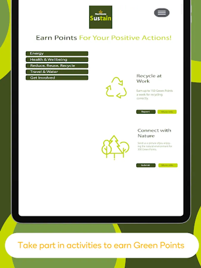 Morrisons Sustain is all about rewarding Morrisons store staff for taking positive actions that help fight climate change, and reduce carbon emissions at home and at work.