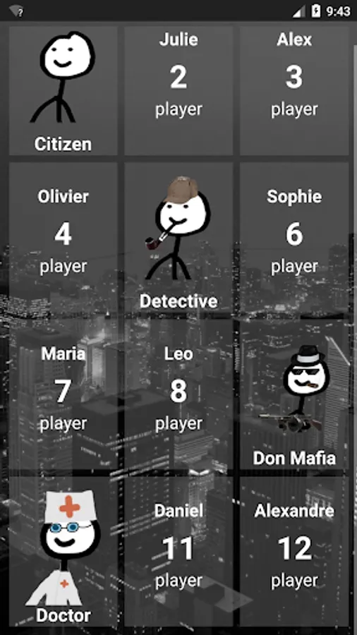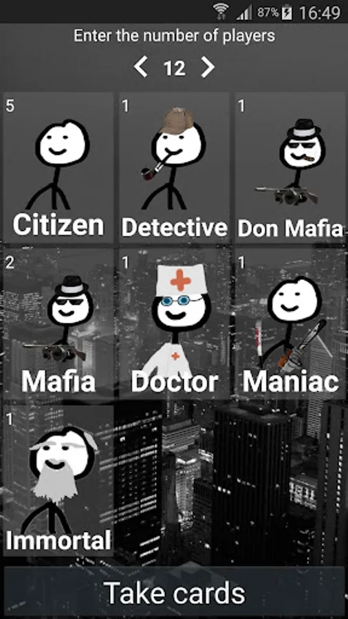 Have you ever found yourself in a situation where you want to play Mafia or Werewolf with your friends but don't have any cards with you, and the only possible solution was to draw cards yourself? Now, with this application, things have changed. Now you can assign roles without any cards. All you need is one Android phone! Simply configure how many players are participating, which roles you would like to use, e.g. how many mafias, werewolves, civilians, villagers etc. you need, and off you go.