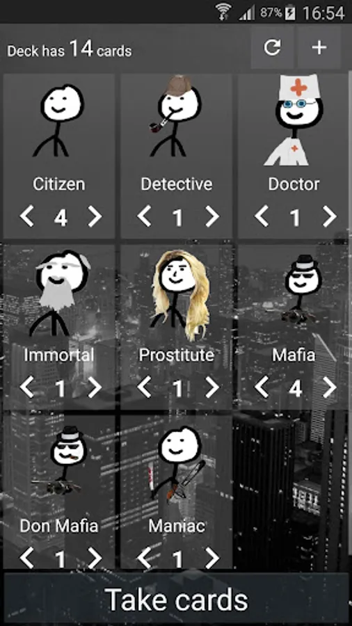 Attention! Mafia Werewolf Cards Dealer only helps each person get their role. You choose which cards will be in the deck, the application shuffles them and issues them to each player in turn. The game itself takes place without a phone. ⚠️