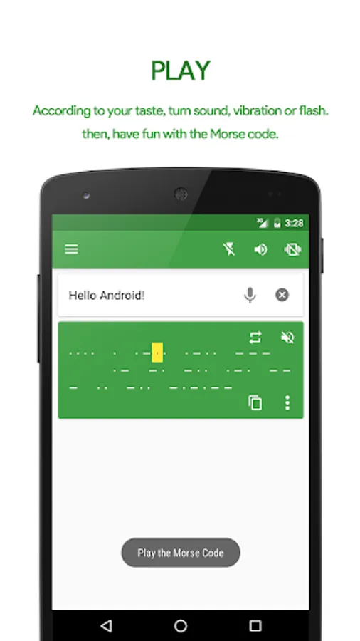 • According to your taste, turn sound, vibration or flash. then, have fun with the Morse code.