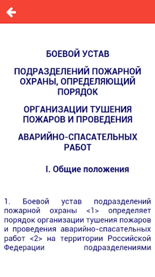 1. Field Manual of fire protection units determines the order of organization of fire-fighting and rescue Deeds territory of the Russian Federation, fire departments, including the procedure for personnel actions during fire-fighting and the ACP, the basic principles of managing and responding fire departments, with the exception of forest fires, fire fighting organization and conduct of the ACP at hazardous industrial sites where mining activities.