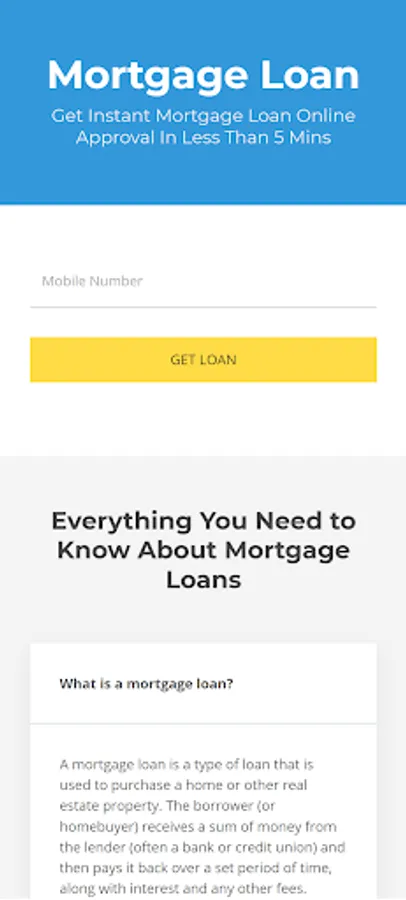 1. Instant access to mortgage loans sent straight to your mobile phone.