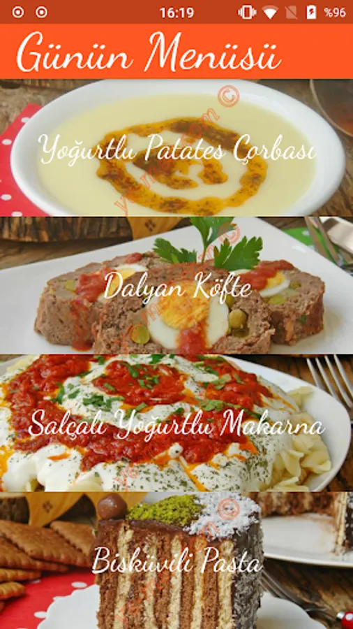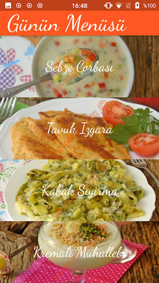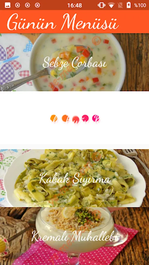 Soup, main course, pasta / rice, dessert menu is prepared for you every day. If there are dishes you do not like, you can change them and create your own menu and access their recipes.