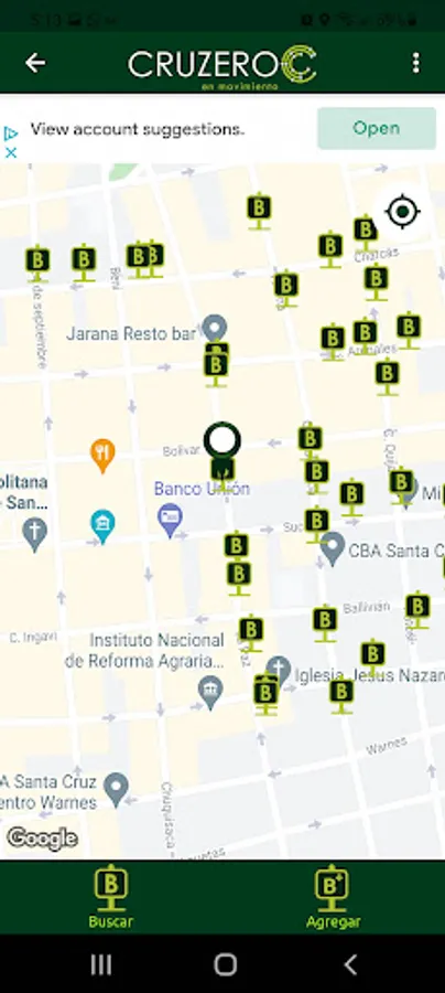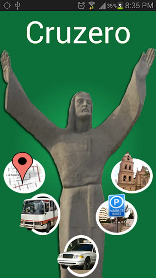Some landmarks are georefeenced and the user can get to know the location of these points on a map of santa cruz, as well it will ask you how to get to this point, if by taxi or by bus, when the user clicks on any of these options, the application links you with the modules "calculate route on bus" (micros) or "Taxi".
