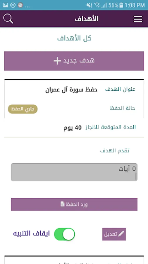 The application also includes a schedule to help you save verses and verses of the Qur'an, and sends a reminder of the signs and dates conservation alerts.
