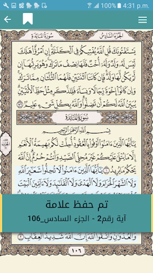 The ability to mark the verse that I stopped reading then to facilitate the return to it later, all this in addition to that the application is fully functional without the need for an Internet connection.