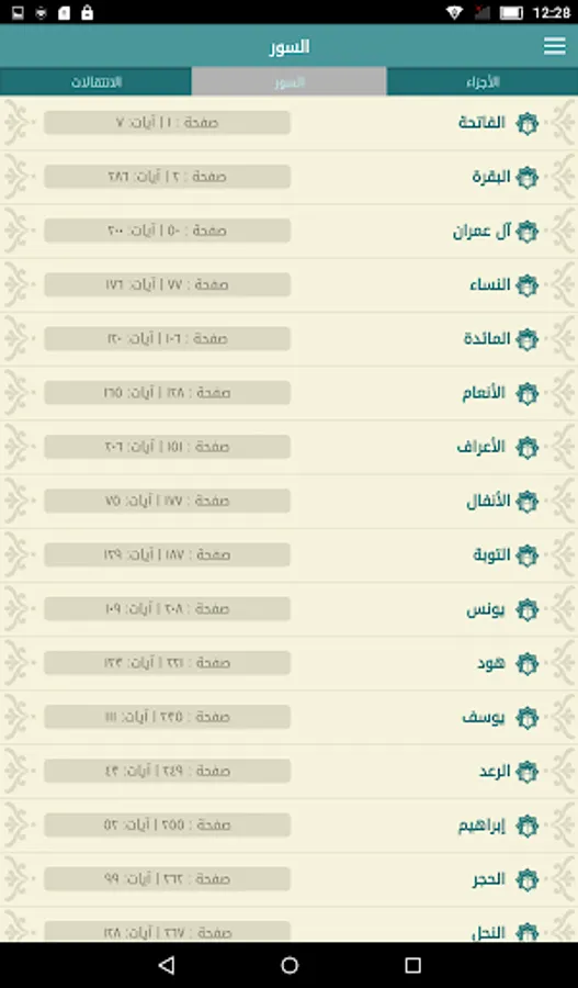 • simple and clear design Uthmanic pages of the Koran.