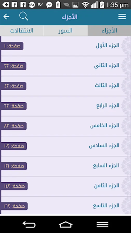 • View the Koran -roaah Hafs-in the form of easy to navigate and read and navigate pages in between the pages and verses easily.