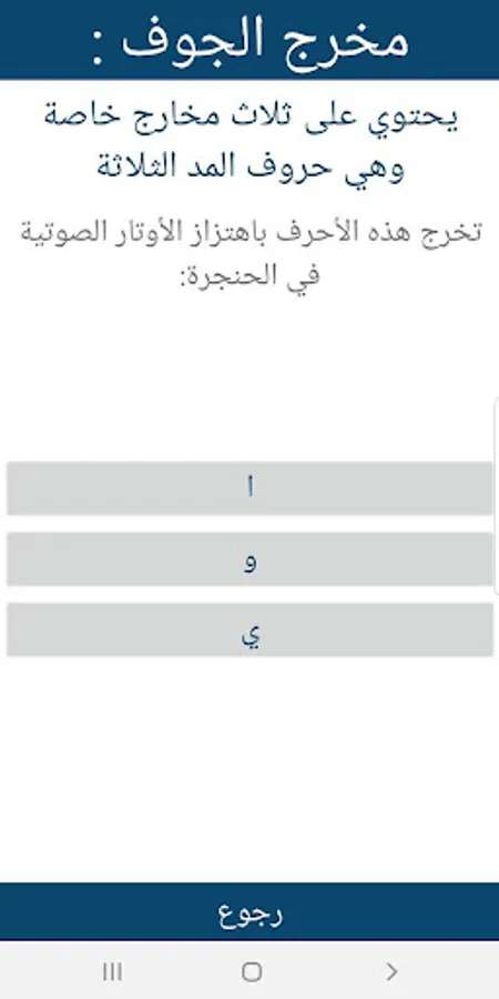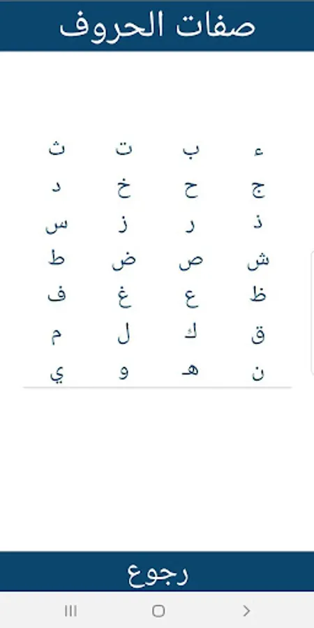 As for the other button on the main page, it is for (character traits), after pressing this button, the program will take you to another page that contains all the letters of the alphabet, and once you click on these letters, their characteristics will appear at the top of the page, and next to each letter there is a sign (! ) In red and when you click on it you will see a popup window showing you the common mistakes of this letter.
