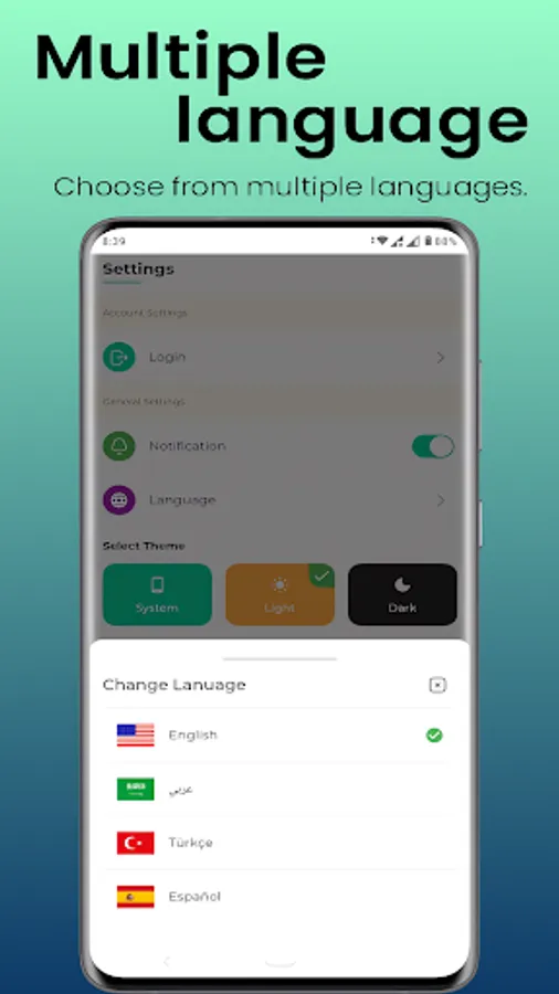 10. دعم لغات متعددة منها العربية والإنجليزية والإسبانية والتركية وهيتم إضافة المزيد.