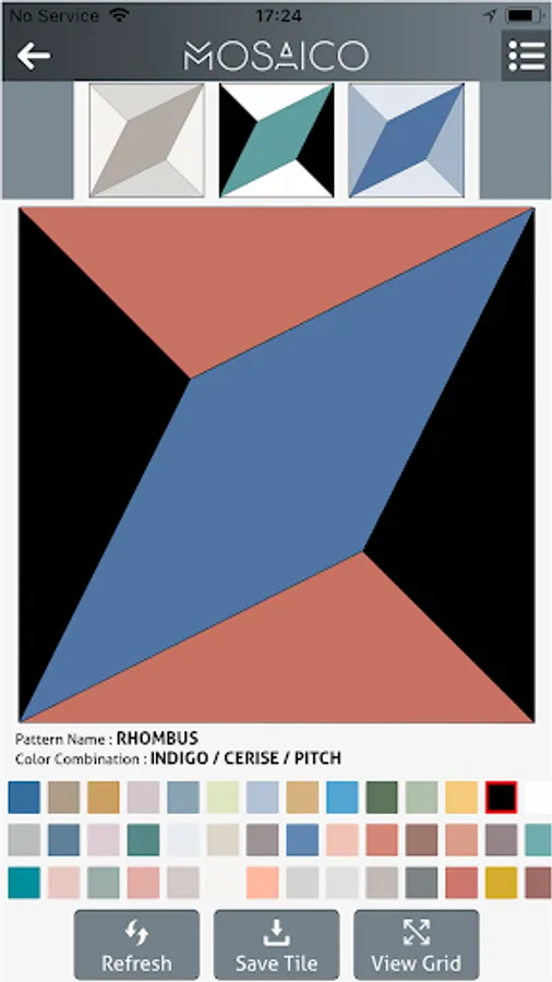 This App is a tool for Mosaico FZC customers to design their own handcrafted cement tiles, by choosing patterns and colors of their liking, and then viewing those tiles as they would appear on a floor or wall. Users can create varying patterns and 3D effects through color choice, or by simply mixing and rotating of patterns. Your imagination is your limit !