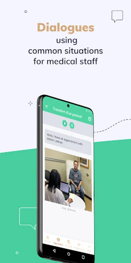 10 recorded conversations, based on typical situations encountered in hospitals and clinics.