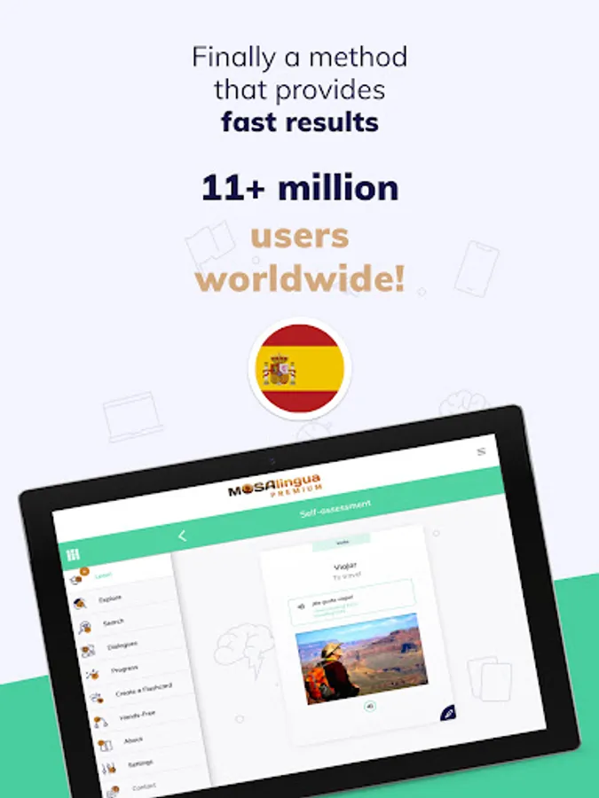 Using MosaLingua’s highly effective and addictive method, you will be able to memorize an impressive amount of Spanish vocabulary, Spanish words and key phrases in record time.