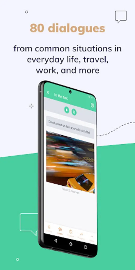 ★ 37 dialogues: our French app contains 37 dialogues that depict common occurrences that happen during everyday life, professional situations and travel.