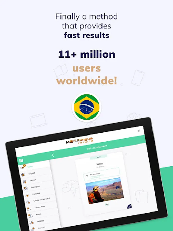 So, you want to learn Brazilian Portuguese in no time? You need MosaLingua! Innovative and effective, our application has helped more than 10.000,000 people all over the world learn Brazilian Portuguese in only 10 minutes per day - with actual results!
