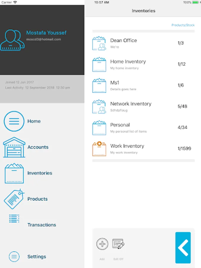 mItems is a cloud based Items (warehouse and inventory) management App. With mItems, you can add accounts (Warehouses), add inventories to accounts, add products (Items), share inventories to allow other users to modify and update on your stock.