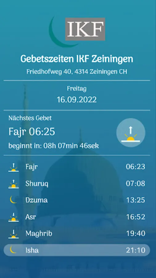 A simple app that shows the prayer times in the IKF Mosque Zeiningen.