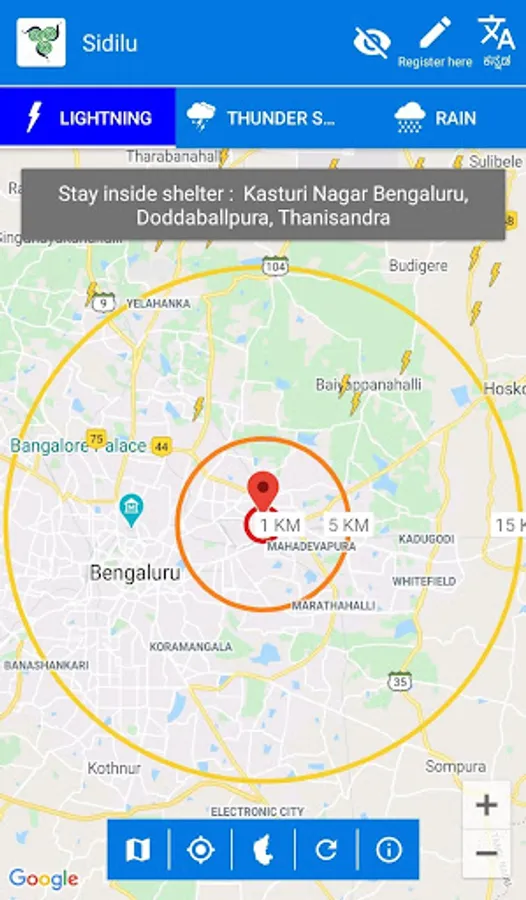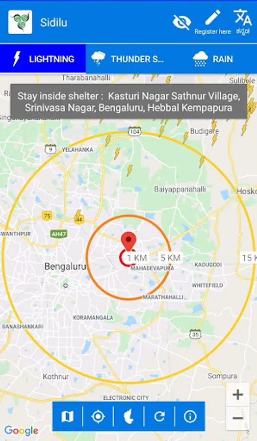 Providing Severe Weather Early Warning Service (SWEWS) for Lightning in the state of Karnataka. The SWEWS shall observe hazardous phenomena associated with convective storm development, intensification and movement and other necessary inputs required to generate early warnings.