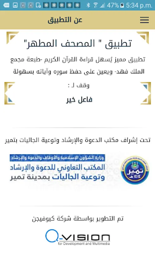 Stop for a benefactor, a unique easy to use application enables you to read the Koran on mobile at any time, any place and without the need to connect to the Internet, it shows all the wall and parts of the Koran (Hafs - Othmani) clearly and comfortably designed with the ability to easily navigate between pages of Mus.