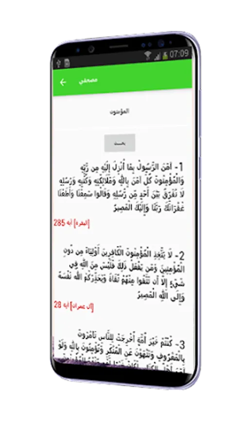 Mushaf program shows you the Koran pages and you can choose verses by clicking on it, and gives you the possibility of hearing the verse separately or hear Sura complete with the possibility of downloading them from the net and keep you have omitted, as you know forethought and interpretation of the selected state.