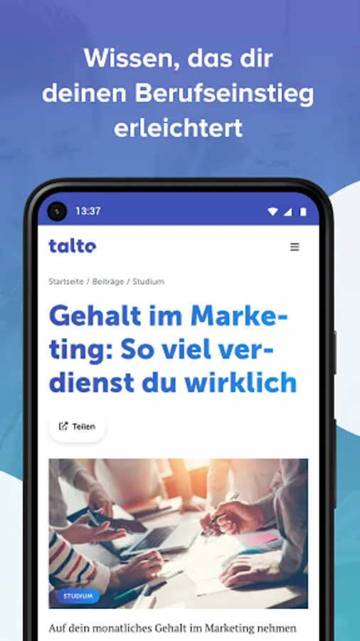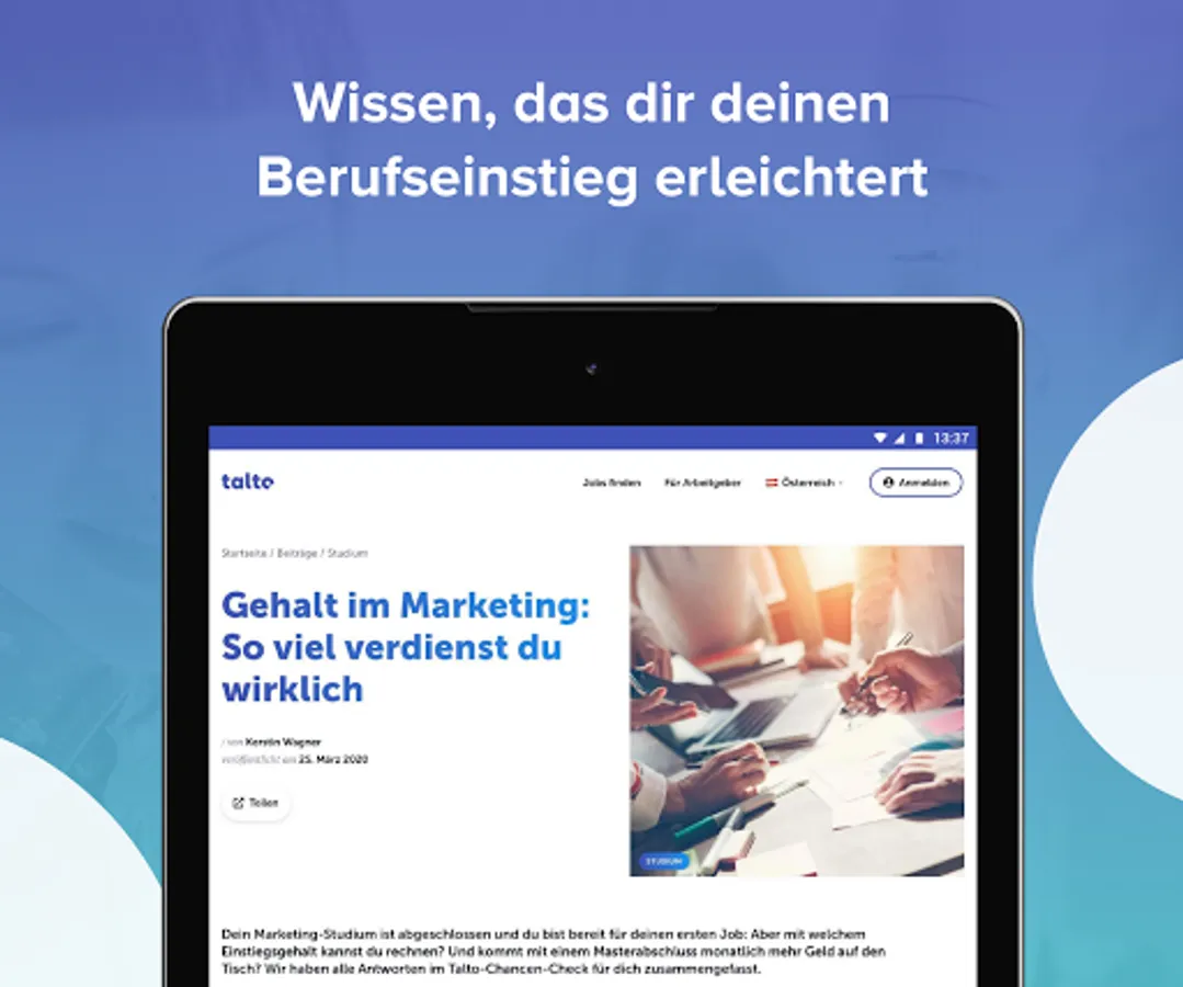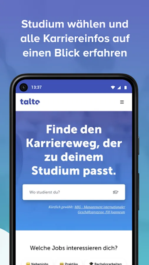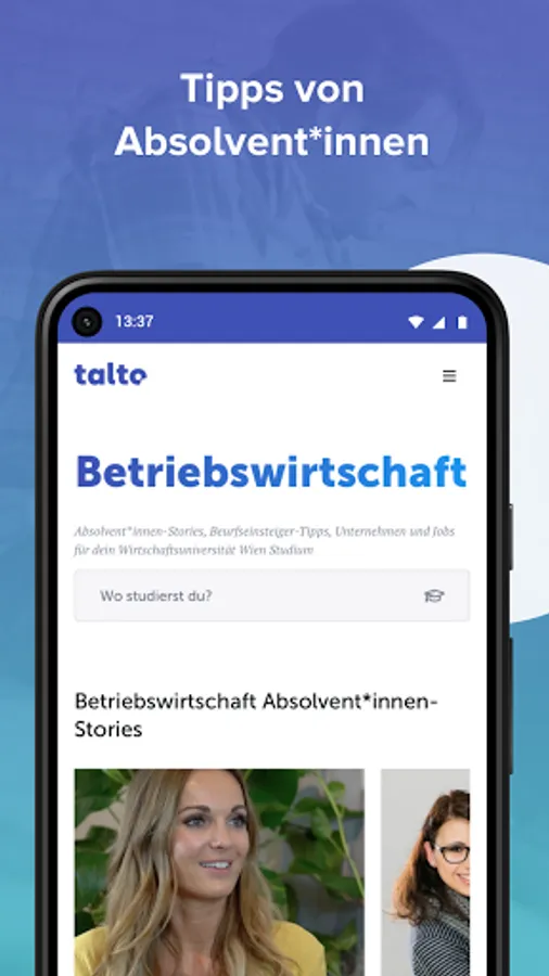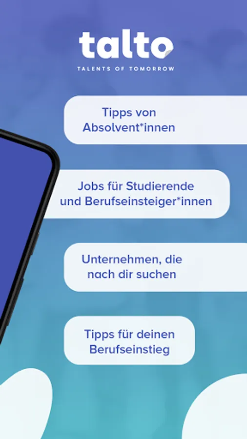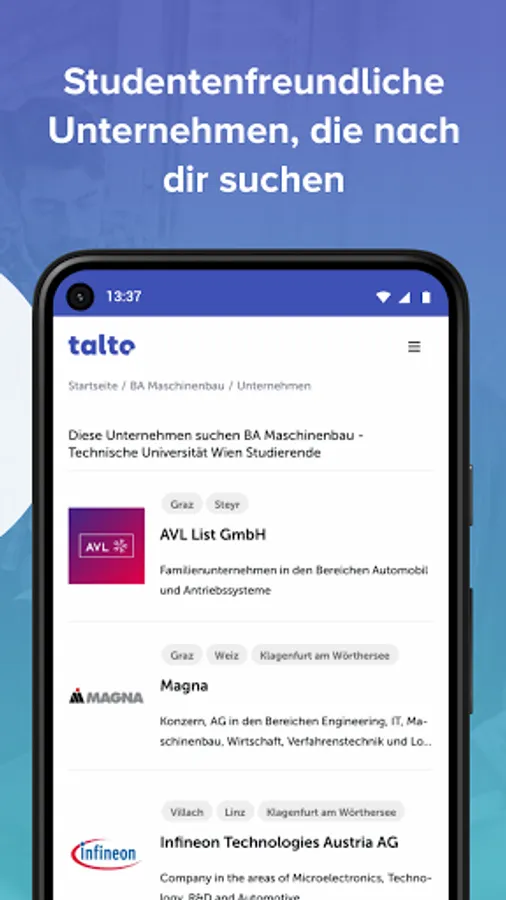 Talto is the largest mobile career platform for students and young talents in Austria who want to pursue a career and are looking for a job! On Talto you will find all the information and tips you need to start your career.