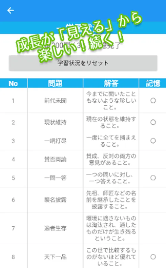 記憶した問題の数を確認することができます。