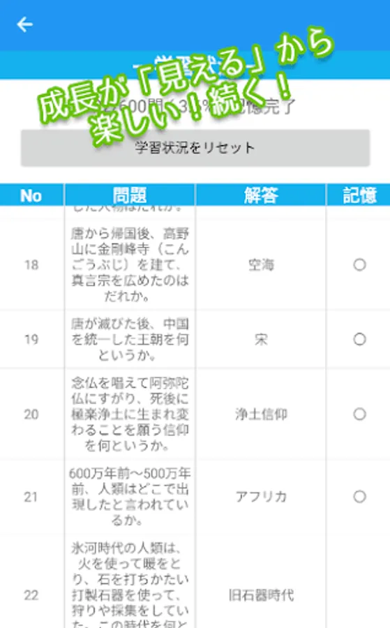 ロジカル記憶 中学歴史は、中学校で学ぶ歴史の知識を効率良く覚える勉強アプリです。