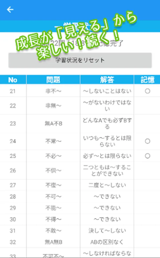 初めての出題で「覚えてる」を選択した問題は、初めから知っている問題なので、2度と出題されません。