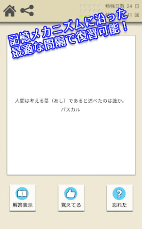 覚えていなかった問題は何度も出題されるので、しっかりと暗記することができます。