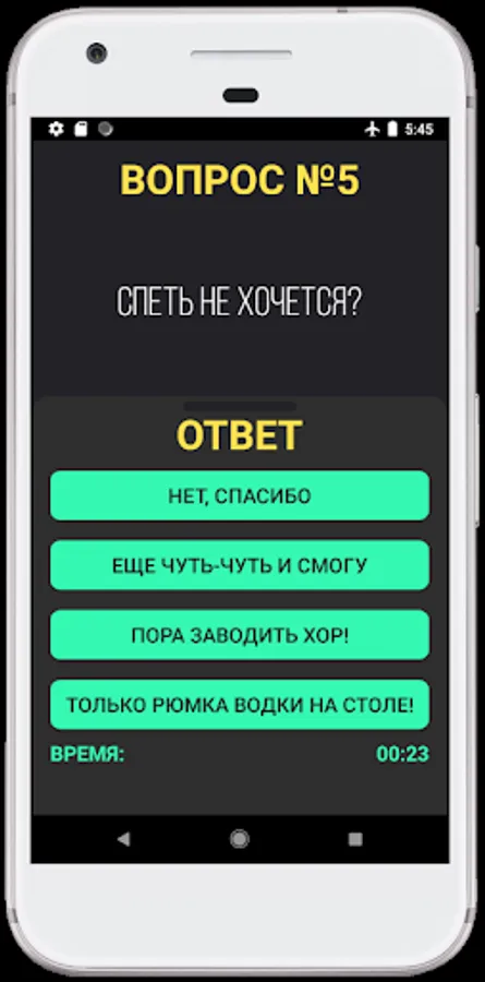 The test presents a series of questions, the answer is given 30 seconds, after which, if there is no answer, a new question is opened. The status is displayed based on the result.