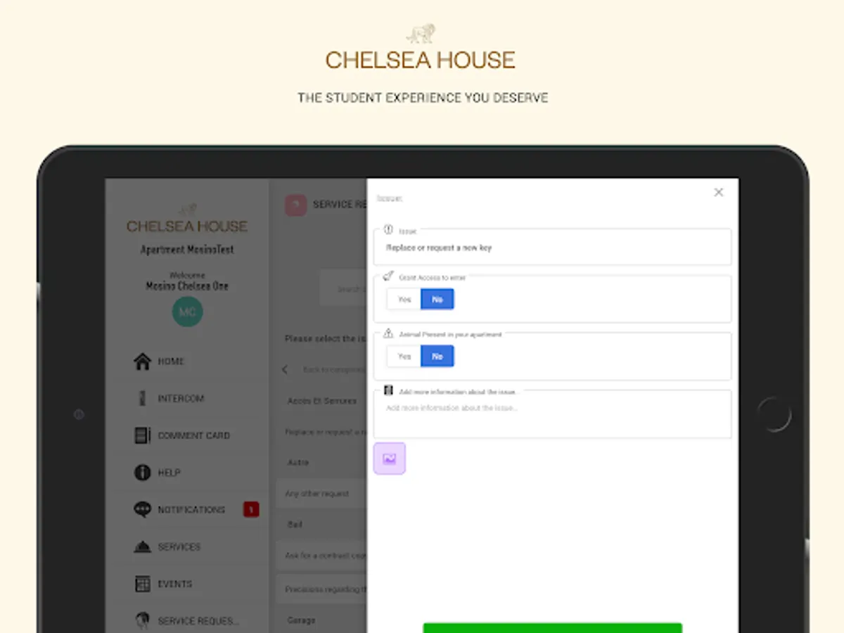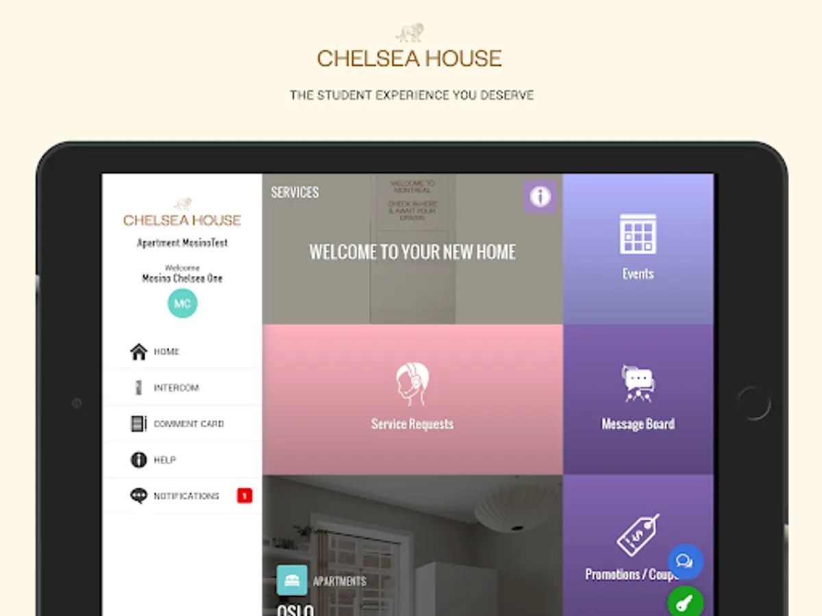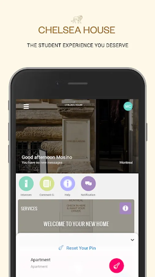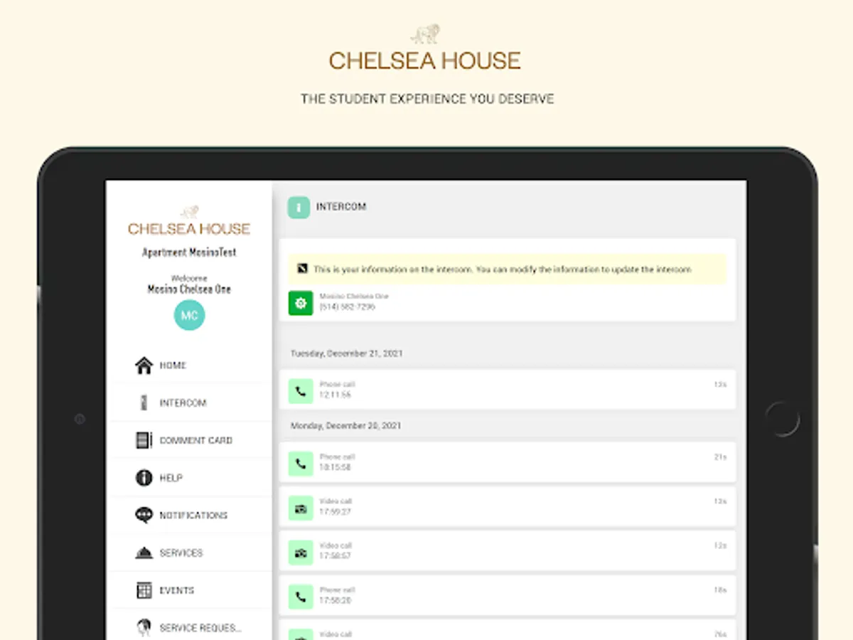Chelsea House application offers various tools for their student housing, located in Montreal, QC, Canada. The list includes: