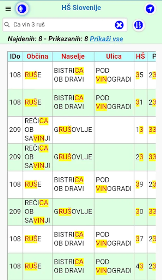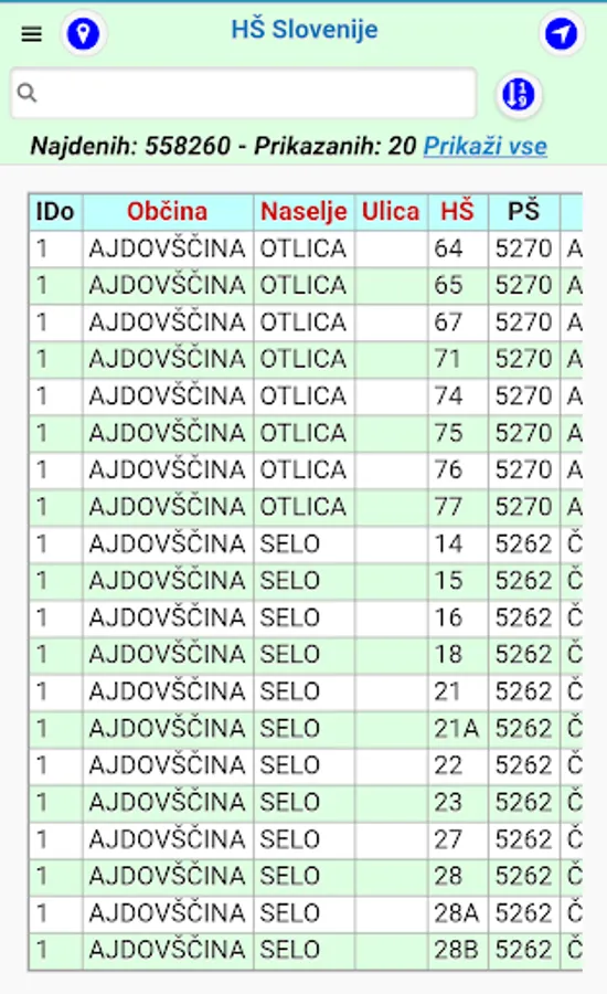The application provides a quick search between all house addresses in Slovenia (more than 500,000). In addition to the geographical coordinates, we also get the postal code and the GURS code of each house number.