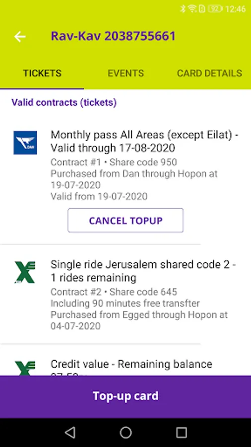 Contracts sold on this app are valid for your rides on Trains in Israel and in the following bus service operators: Dan, Egged, Metropoline, Kavim, Superbus, Afikim and more