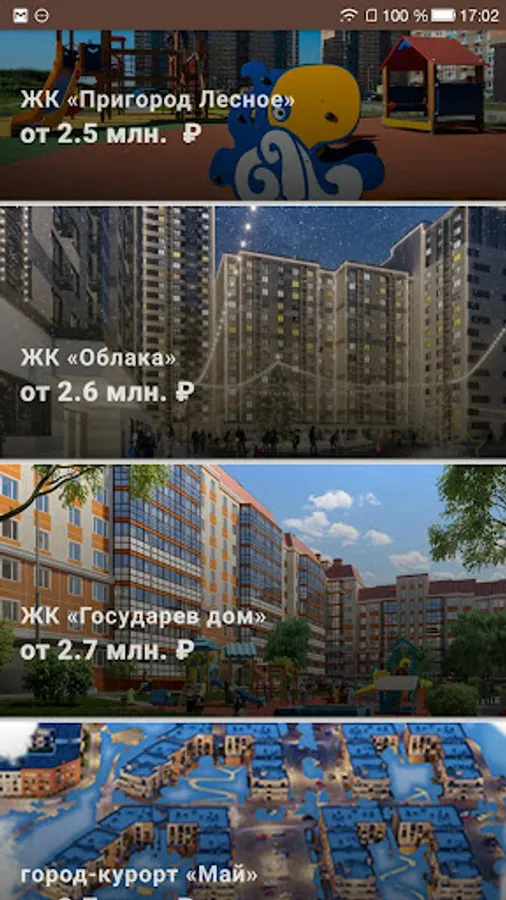 The most complete and up-to-date information about new buildings in residential complexes in Moscow and the Moscow region. Directly from the app, in 1 click you will be able to contact the operator who will select for you the best option for your future apartment.