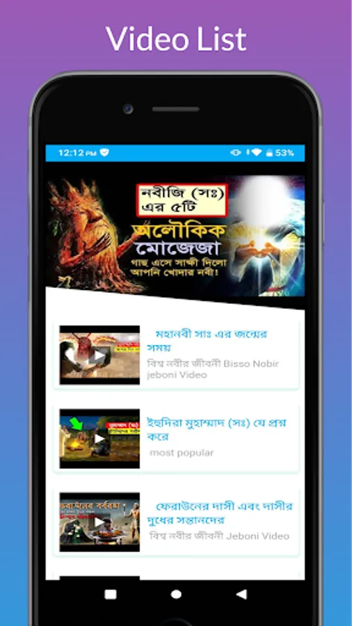 আমাদের এই অ্যাপটি হচ্ছে হযরত মুহাম্মাদ (সাল্লাল্লাহু আলাইহি ওয়াসাল্লাম) এর জীবনী এবং বাণী নিয়ে। বিশ্বনবীর জীবনী (Nobijir Jiboni video) এমন একটি বিষয় যা জানা প্রত্যেকটি মুসলিমের জন্য প্রয়োজনীয়। হযরত মুহাম্মদ (সাঃ) এর বানী (Nobijir Bani) আমাদের জীবন কে সুন্দর করে তুলে। মহানবী (সাঃ) এর জীবনী সম্পকে জানা ও শিক্ষা নেয়া আমাদের জীবনের জন্য খুবই গুরুত্বপূর্ণ। হযরত মুহাম্মাদ (সাঃ) এর জীবনী আমাদের অফুরন্ত শিক্ষার উৎস। নবীজির জীবন কাহিনী (Nobijir Kahini) না জানলে একজন মুসলিম ইসলামের মর্মই বুঝতে পারবেনা। তাই আমাদের সবারই নবীজির জীবনী ও নবীজির বাণী জানা উচিত।