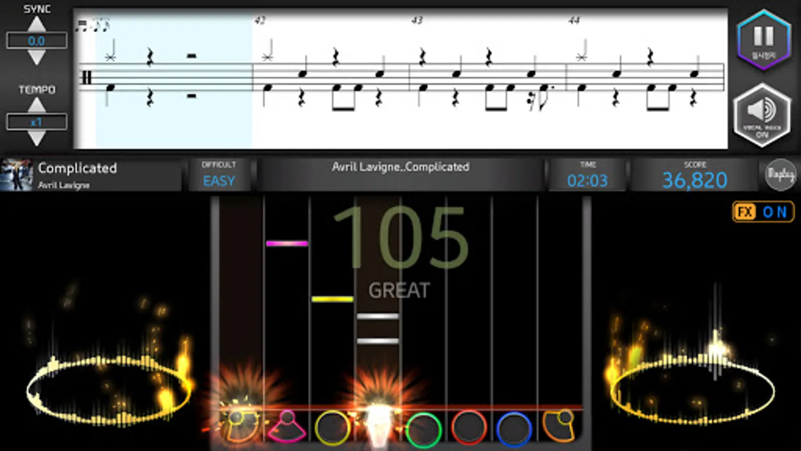 - Sync: Play your favorite drums in sync with the falling bar and beat.