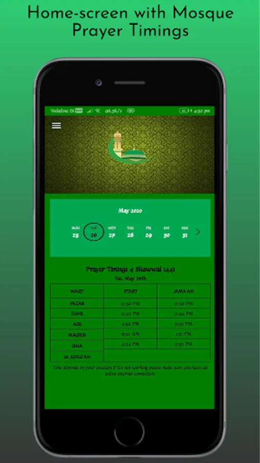 Mosque App. Specifically designed for Masjid and its visitors who are not able to come to the Masjid for the Prayers. The app is for the people in and around the masjid area who regularly visit the Masjid for Prayers. The app allows users to see prayer timings and attend Live Jamat from their houses using the Live Mosque feature. If the users have any questions to ask the users can make use of the Ask imam feature.