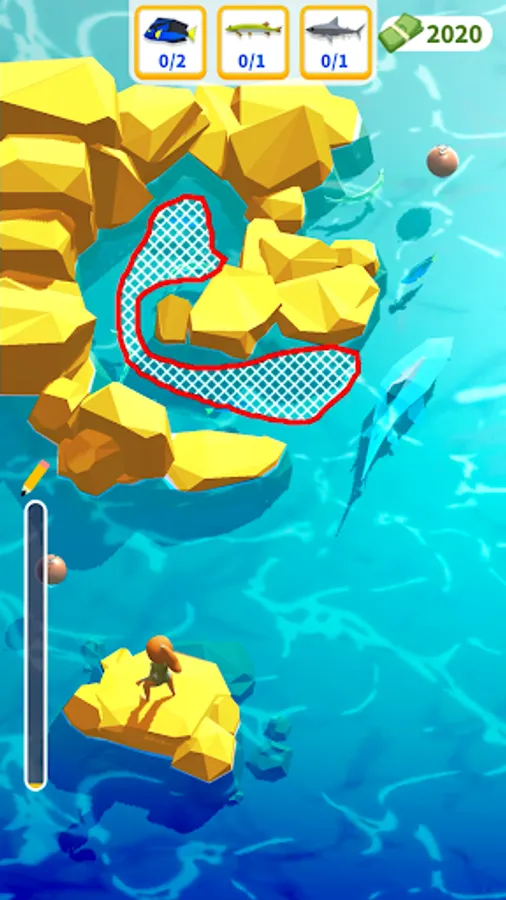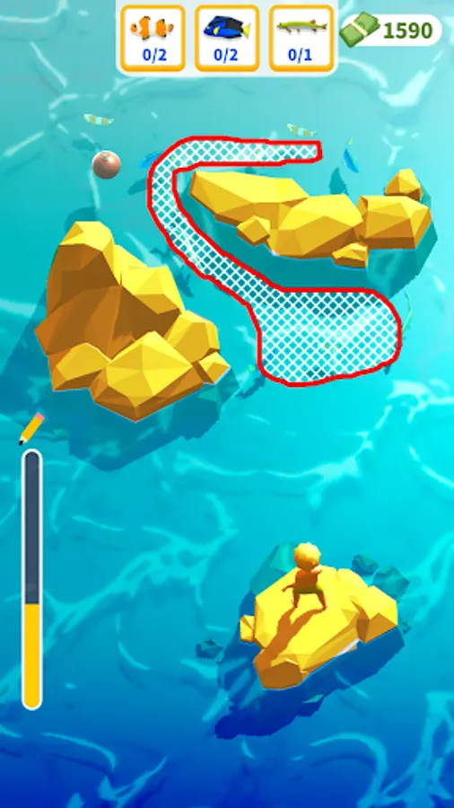 If the net you throw gets caught on a rock or obstacle, you are out. The key to victory is to avoid them.