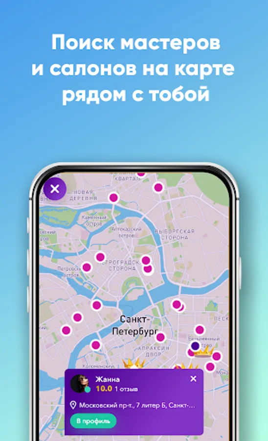 In the application, you can find the best beauty salons with reviews and top barbershops with reviews and available hours for recording, pay for the service directly on the site and find the very ideal master, without risk to yourself, since you can use the Safe Deal service. The funds will be reserved on a special account until the full and high-quality provision of services even by an unfamiliar master.