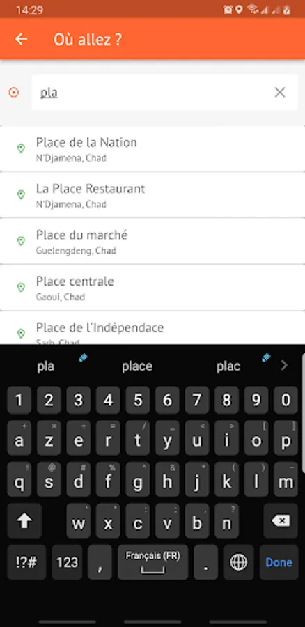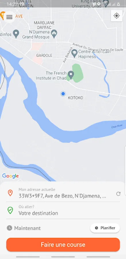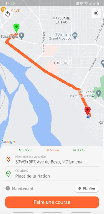 1. Freely define your route on the map and order your transport throughout the city of N'Djamena.