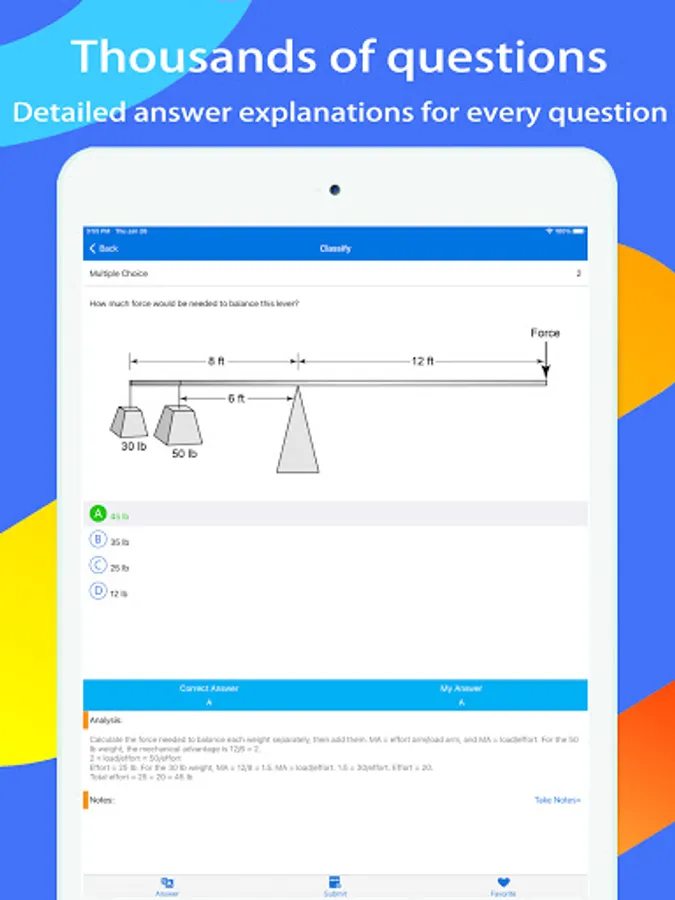 ASVAB Navy Expert is a powerful exam simulator that allows you to choose various practice tests with detailed answer explanations for every question.