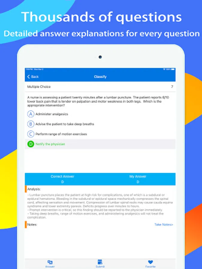 - Expert record you performance, gives a comprehensive review and highlight the weaker area to let you focus on them while studying for NCLEX PN exam questions.