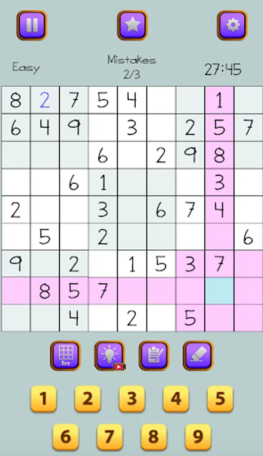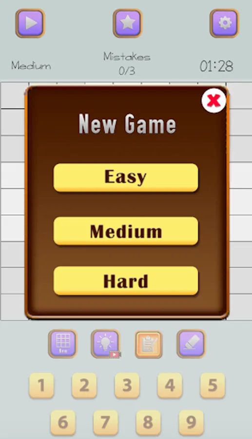 Beside this if you stuck at some point and need help, simple tap the hint button to get hint. You can also make notes to solve puzzle. Erase button allows you to erase your mistakes. You have 3 chances of mistakes in this Sudoku for Free.
