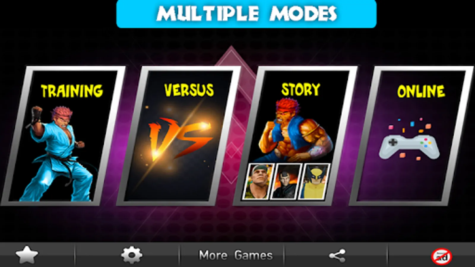 There are 3 different and unique stunning modes in Superheroes Fighting Game Grand Immortal Battle. These modes consist of Training Mode, Player vs CPU Mode and Story Mode. Beside this your can also play super hero fighting game on local network with friends and family.