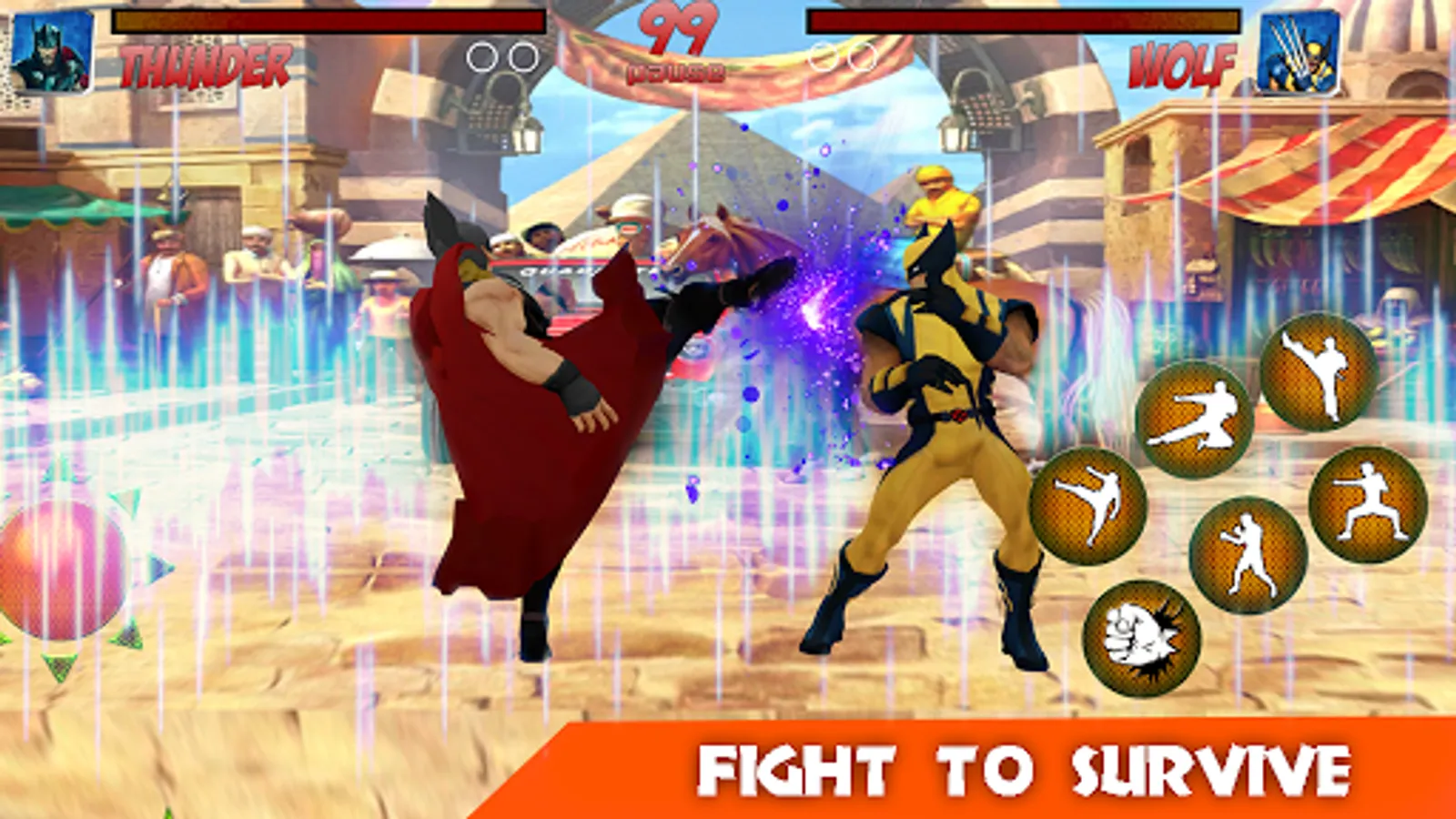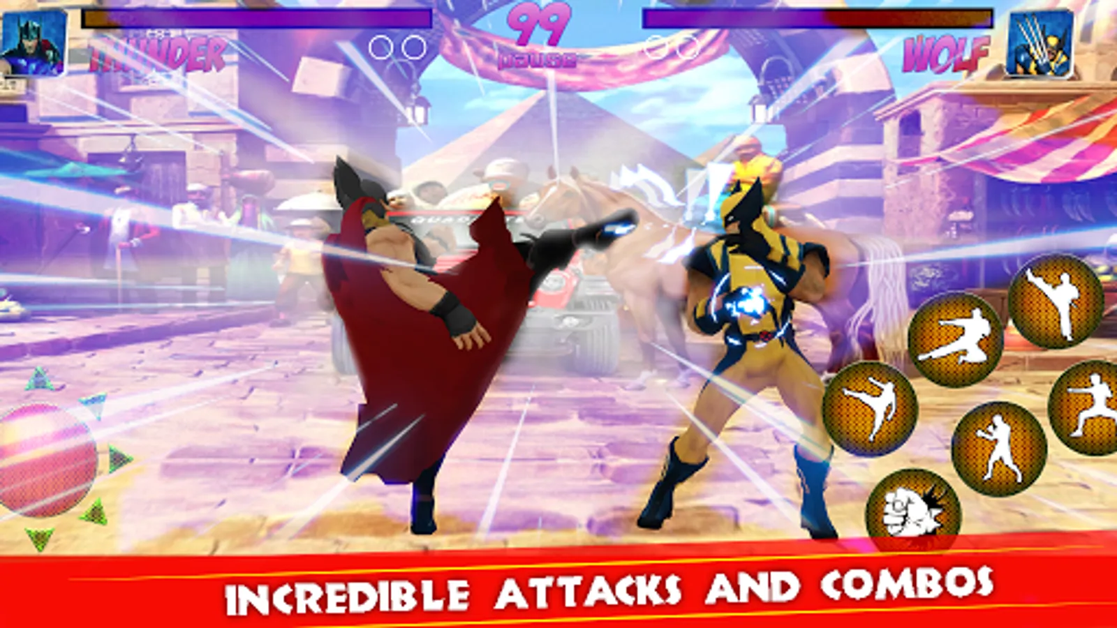 Before you start superheroes fighting game, we recommend you to get training and learn street fighting skills. You can learn superkicks, punches, combos and power shots.