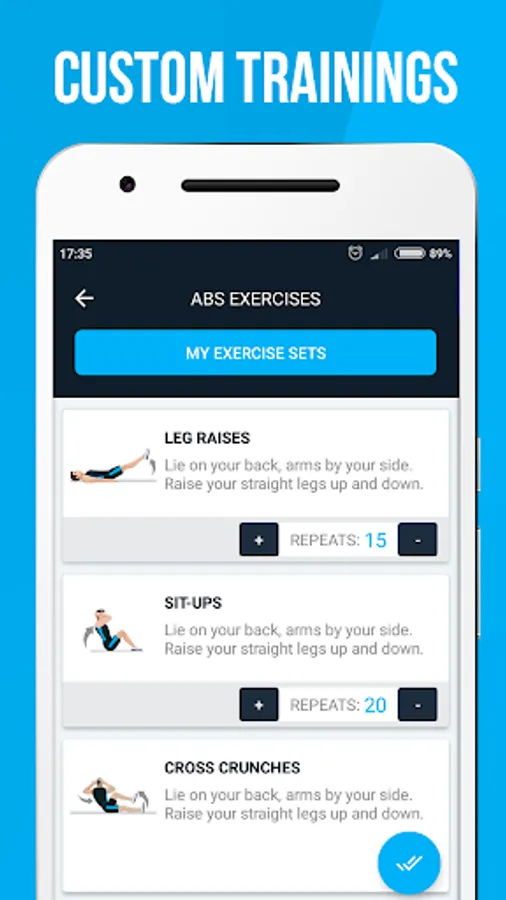 Animated exercises and description will help to correctly perform the exercises for the best result. You do not need equipment, so you can train wherever and whenever you want.