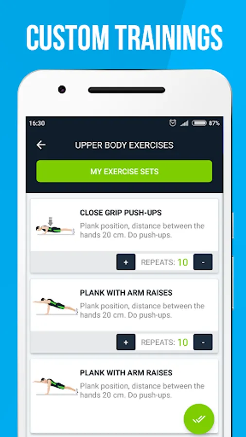 Animated exercises and description will help to correctly perform the exercises for the best result. You do not need equipment, so you can train wherever and whenever you want.
