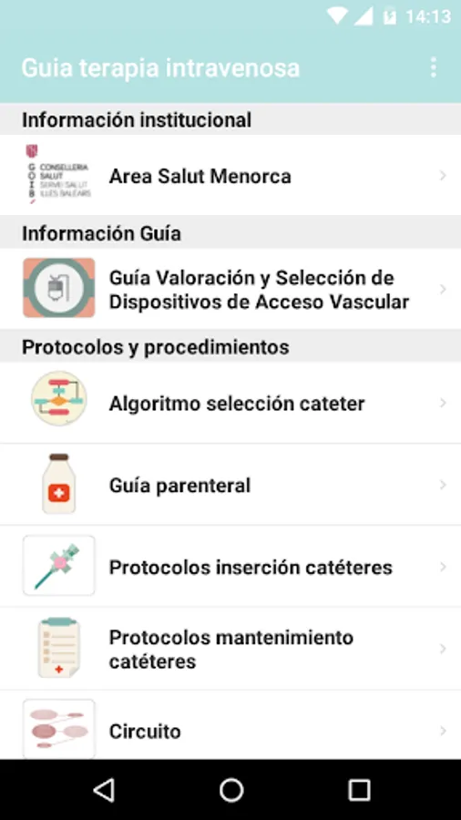App Therapy IV (Intravenous Therapy) The drivers of the implementation of the GBP in the Mateu Orfila Hospital Mahon, Menorca, nurses have designed this application for mobile devices (app) as a facilitating tool in the implementation of the GBP.